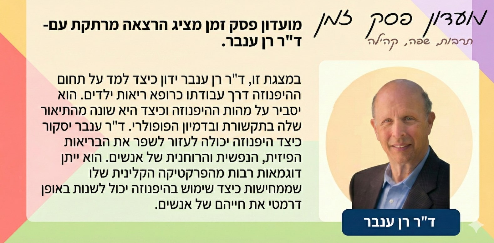 In this presentation, Dr. Ran Anbar will discuss how he learned about the field of hypnosis through his work as a pediatric pulmonologist. He will explain the nature of hypnosis and how it differs from its portrayal in the media and popular imagination. Dr. Anbar will review how hypnosis can help improve physical, mental, and spiritual health. He will give many examples from his clinical practice that illustrate how use of hypnosis can dramatically change people’s lives.