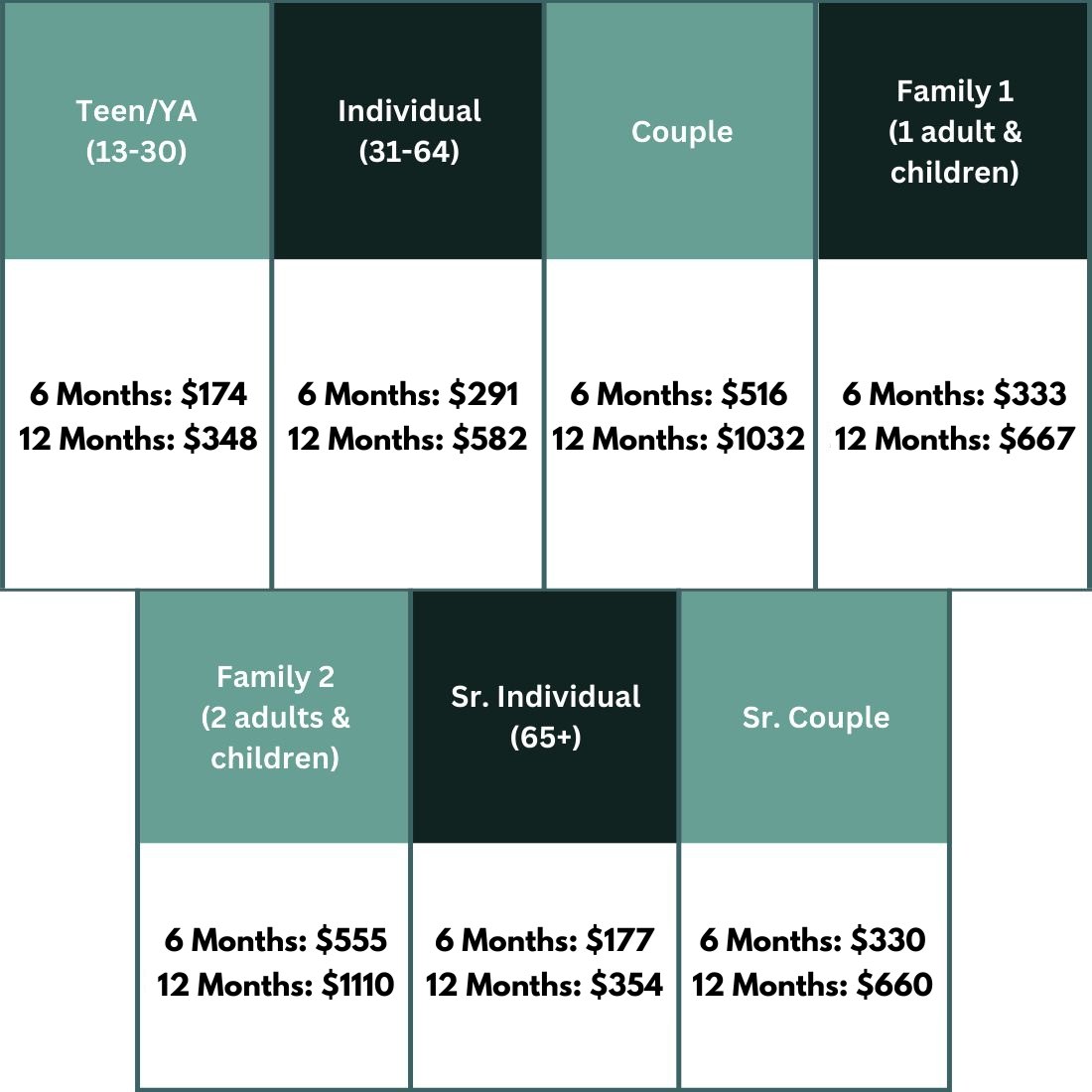 The prices below represent a 50% discount: